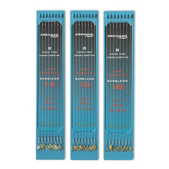 Een geheel nieuw concept kant en klare onderlijnen van 15cm voor het vissen met de vaste hengel op commercials. 8 onderlijnen per plate. De onderlijnen hebben een precies gelegde haakknoop, een constante lusgrootte en zijn onder lichte spanning op de plates gemonteerd. Hierdoor is het nylon compleet kinkvrij, wordt het aas perfect gepresenteerd en zijn ze ideaal om mee te vissen.